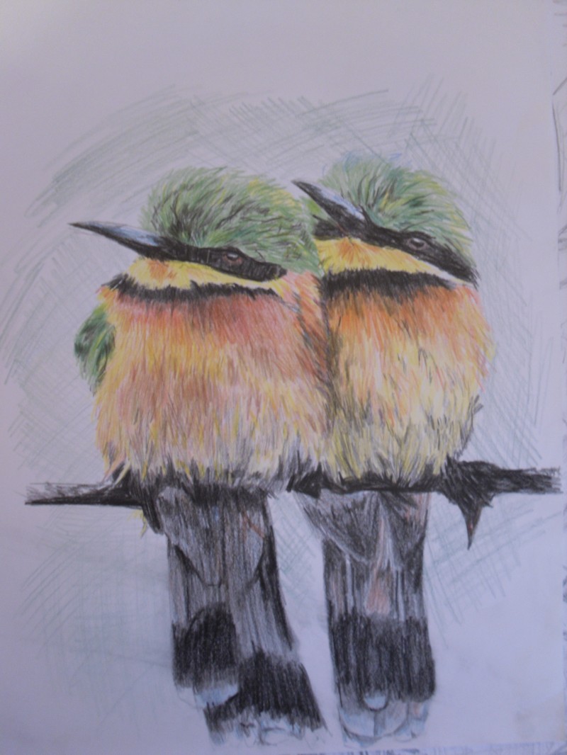 I loved the colours in this photograph in a book I had called Animal. I really wanted to capture the detail of the bird’s feathers, so I decided to use coloured pencils for detail.